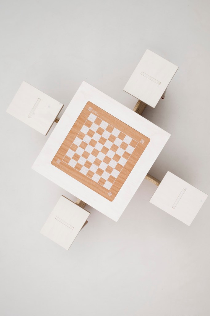Its adjustable seats allow both young and old alike to share a moment of playful connection: in spite of the small size, adults can comfortably use the seats by placing their legs sideways, while children of all ages can adjust the seats’ distance from the table to suit their size.