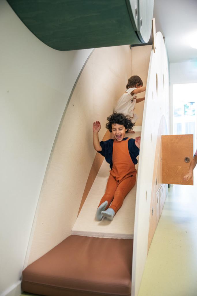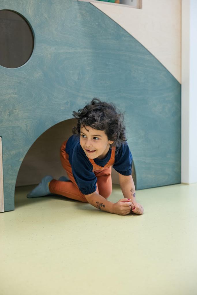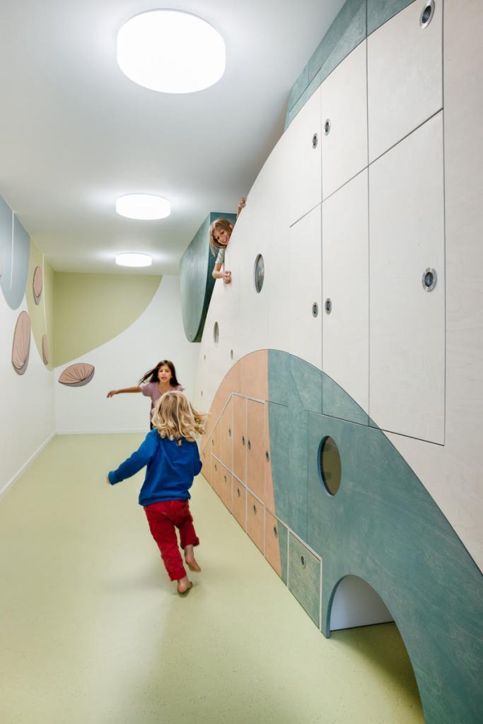 Designed at baukind, Kita “Tommelise” is a a trilingual and multicultural kindergarten under the sponsor Nobiwerk in Berlin Neukölln with Thumblina (Tommelise, in Danish) as its theme of inspiration.