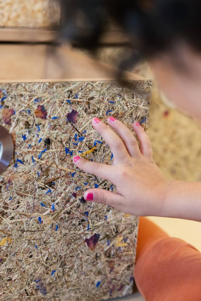 The graphics that enable children and teachers to recognise the different classrooms can be traced back to the shape of the seed from which Thumbelina is born: this shape is reinterpreted and transformed into different elements, both natural and animal.